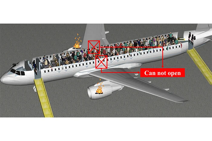 To investigate these emerging challenges, the research team focused on a dual-engine fire scenario in an Airbus A320. The A320 family is one of the most widely used narrow-body aircraft globally, making it an ideal model for a study with broad applicability. The researchers employed sophisticated simulation techniques, creating full-scale computer-aided design (CAD) models of the A320 cabin. These models were then integrated with Pathfinder, an industry-standard software specifically designed for evacuation modeling. Pathfinder allows researchers to simulate complex human behaviors, movement patterns, and interactions within a defined space, providing a highly accurate representation of an evacuation event without the inherent risks and costs of real-world trials.