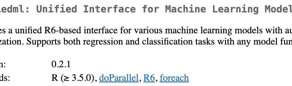 This latest iteration of unifiedml focuses on refining the interaction between R users and various machine learning algorithms. The package’s core mission is to abstract away the complexities of different model implementations, allowing data scientists and analysts to leverage a consistent API across a range of popular machine learning tools. Version 0.2.1 marks a strategic evolution in this effort, responding to the dynamic needs of the R machine learning ecosystem.